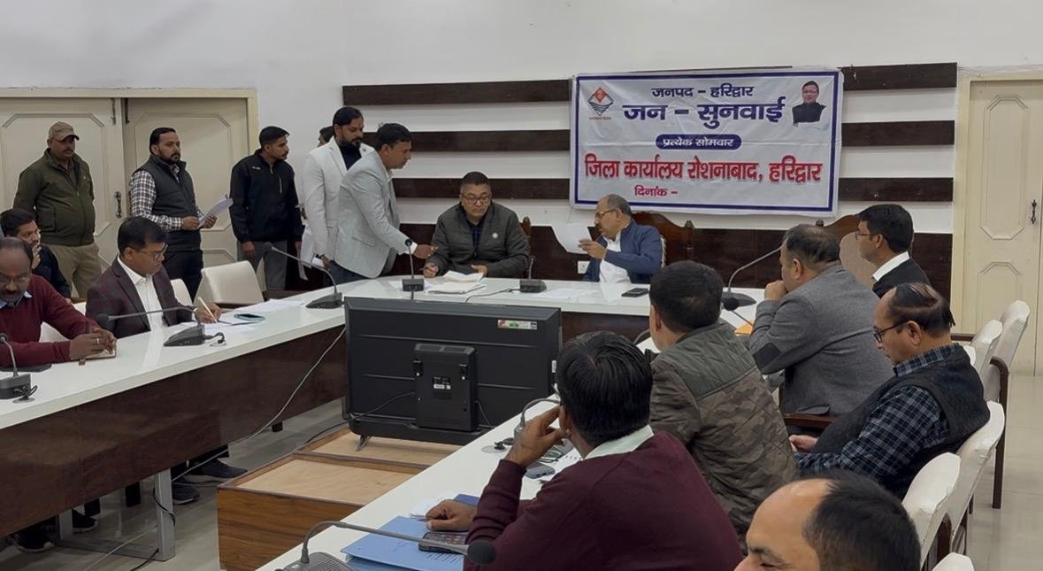 हरिद्वार : जनपदवासियों की समस्याओं का त्वरित निराकरण करने के उद्देश्य से जिलाधिकारी के निर्देशन में मुख्य विकास अधिकारी डॉ. ललित नारायण मिश्र की अध्यक्षता में जिला कार्यालय सभागार में जन सुनवाई कार्यक्रम आयोजित किया गया, जिसमें विभिन्न विभागों से संबंधित 34 शिकायतकर्ताओं ने अपनी समस्याएं दर्ज कराई गई जिसमें 15 समस्याओं का मौके पर निराकरण किया गया शेष समस्याओं को निस्तारण हेतु संबंधित विभागों को प्रेषित किया गया। जनसुनवाई कार्यक्रम में, राजस्व,भूमि विवाद, विद्युत, अतिक्रमणआदि से संबंधित समस्या दर्ज कराई गई।